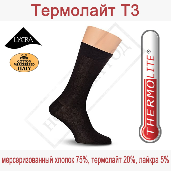 -Мужские носки из мерсеризованного хлопка с добавлением термоволокна Thermolite